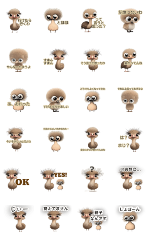 ダチョウだちょ~んなんつって。かわいそうな人が使うスタンプです。スパイス/コミュ障/口癖/クズ/ファミリー/ロック/面白い/ブルースパンダパフ より発売