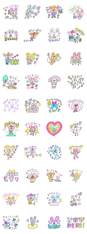むちむち幼児体型の動物ちゃんスタンプです。よく使う挨拶や返事をこれでもかってほど入れました!手書き風、レトロ