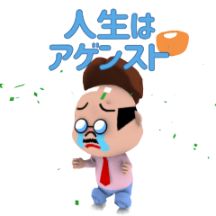 画面いっぱいの大きなボスのゴルフスタンプ。時々ヅラが外れます。