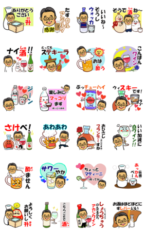 笑顔の中高年㉕ 酒ダジャレ編 スタンプ画像一覧