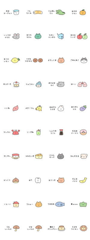 可愛い&小さいダジャレのスタンプ。だじゃれ/駄洒落/ネタ/面白い/昭和/平成/おやじギャグ/死語/ワニ/ケーキ/ドーナツ/タピオカ/レモン/寿司/魚/プリン/バナナ/草/歯/臓器