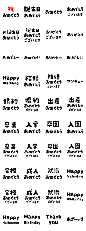 おめでとう・ありがとう(文字のみ) スタンプ画像一覧
