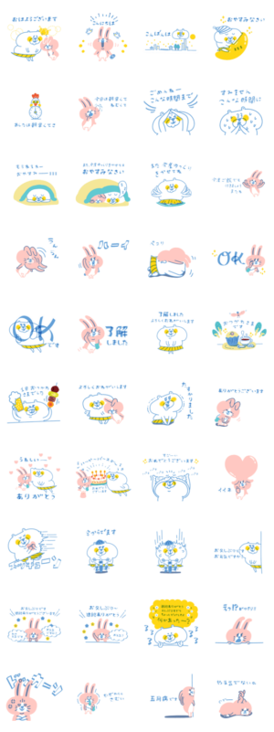 大人特有のお返事とゆるい敬語入り(文字白縁あり)/オシャレ/シンプル/ブルー/文房具/挨拶/うさぎ/karin