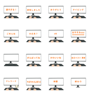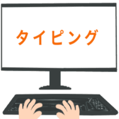 パソコン画面とキーボードのイラストです。 文字や指がアニメーションになっています。shiro より発売