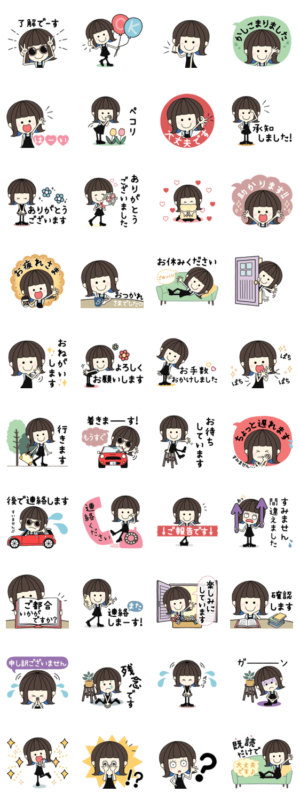 Happy Girl - 青×外ハネボブ part4 スタンプ画像一覧