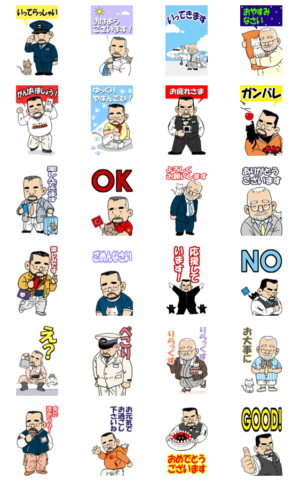 かわいいおじさんたちと猫のステッカーです。 ※このスタンプはトークルームで大きく表示されるBIGスタンプです。POLAR BEAR より発売