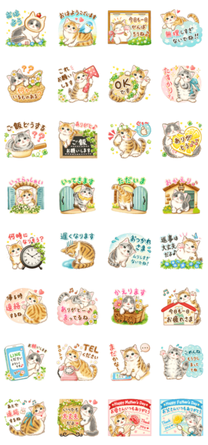 もふもふちっちゃい猫たちのスタンプです♪ 家族での連絡のやり取りに使いやすい言葉を詰め込みました♫仲良しなお友達との連絡や、母の日と父の日の感謝のメッセージにも♡