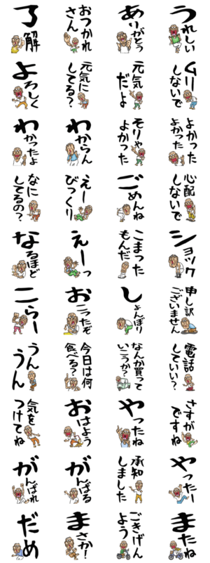 昭和レトロなおじいさん。大きい文字のあいさつスタンプ第2弾です。老眼や小さい文字が見えにくい方のための見やすいスタンプ。昭和おじいさんに癒やされてくださいね、 ※このスタンプはトークルームで大きく表示されるBIGスタンプです。Brody Machine より発売