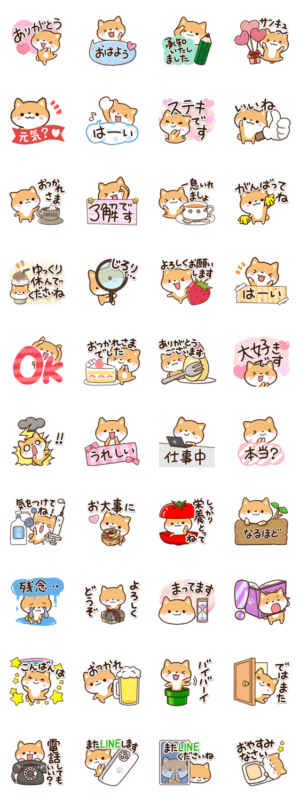 柴犬の『まめシバ』スタンプ。毎日使える、あいさつや便利な言葉の、かわいい豆しばいぬスタンプ。ポメラニアン等、茶色のイヌ好きの方にも。【かたこ】あいさつ/敬語かたこ より発売