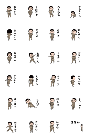 ヒョウ柄ジャージの関西弁スタンプ。芋大好きhitta より発売