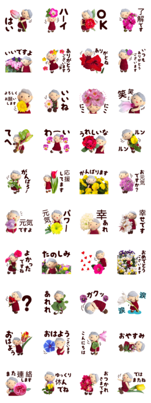あみぐるみ おばあちゃん (花)スタンプです。てんじくあおい より発売
