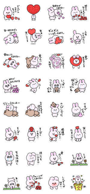 溢れる気持ち♡シュールなミニうさぎのスタンプです。eribo より発売