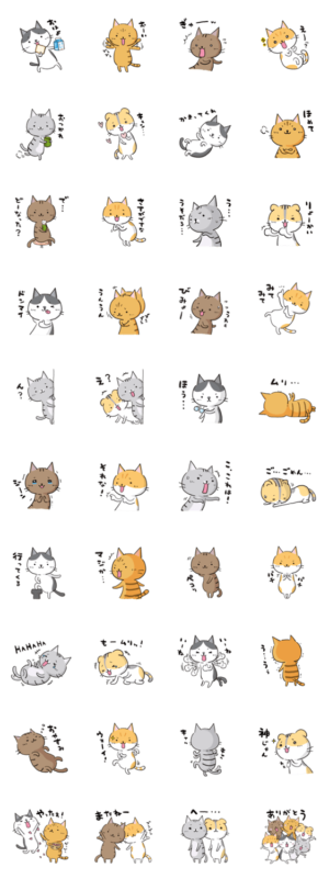 猫キャラ「ねころぶ」のスタンプ第2弾! かわいい6匹の猫があなたの代わりにリアクションして、トークを盛り上げます。言葉だけでは伝えきれない時に使ってみてにゃ。