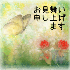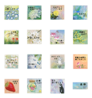 手描きの日本画をベースにしているスタンプです。絵葉書を送るように、お花を贈るように、大切な人へ丁寧な気持ちを伝えたい時に使ってください。