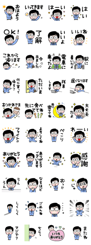 かわいいお父さんの表情豊かなスタンプです。 スーツ仕様でお仕事モードです。satomi より発売