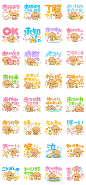 毎日役立つ内容を取り揃えたトイプードルの、挨拶、相手を気遣う基本の言葉や敬語も入って便利なセット♪