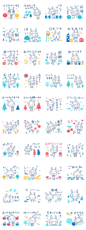 ほぼ白うさぎ。北欧スタイル。「おはようございます」「いいね」から「楽しみです」まで。日常生活で使いやすいシンプルキュートな言葉集。