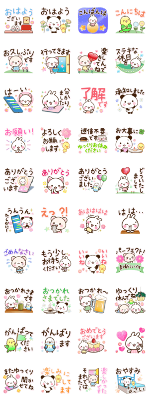 使いやすい敬語入りの日常スタンプです。かわいいうさぎ・パンダ・ひよこ・インコ・くま・ねこが登場♪誕生日のプレゼントにもオススメです。
