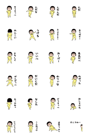 黄ジャージの東北弁スタンプ。芋大好きhitta より発売