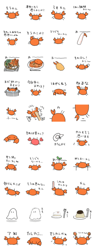 うざいカニ、うろおぼえのオウムガイ、おばけ、冬毛のおばけ、カビたたべものなどのスタンプが含まれています。やさしくつかってね。はし より発売