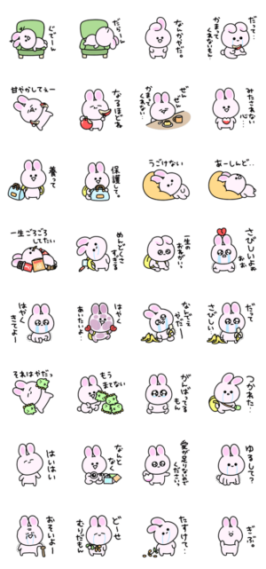 甘ったれ。シュールなミニうさぎのスタンプです。eribo より発売