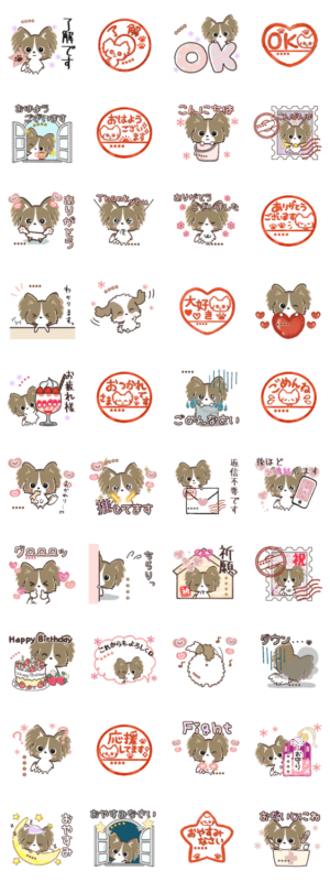 愛犬の名前が入る♡パピヨン♡ハンコ入り スタンプ情報