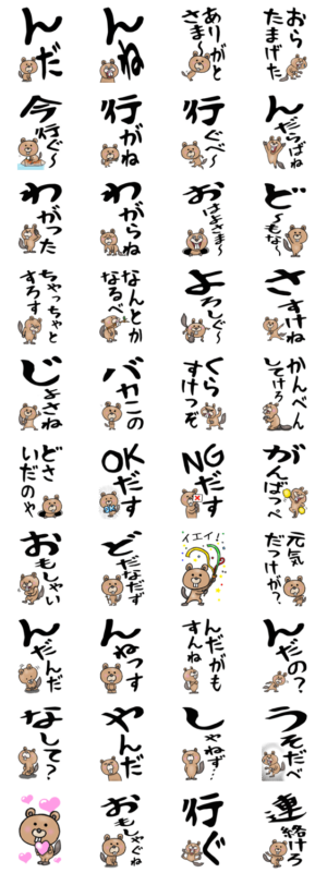 老眼や文字が小さくて読みづらい方々のための大きな文字の山形弁ビーバーちゃんのスタンプです。おじいちゃん、おばあちゃん、シニア世代の方々、どうぞ。