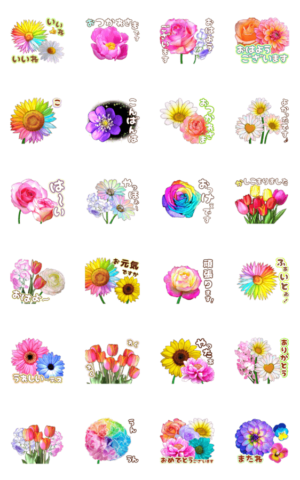 大人女子が毎日誰にでも送れる使いやすいあいさつ/優しい敬語/カラフルなかわいいお花アニメスタンプ/春夏秋冬長く使えます。