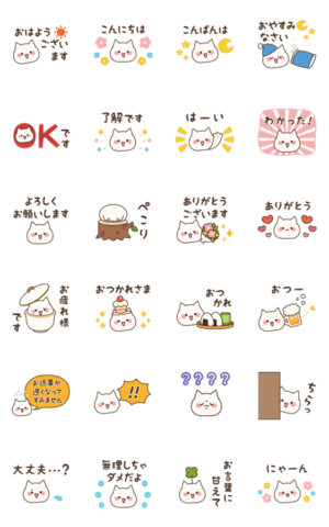 どんな相手でも幅広く使える白猫の顔のアニメーションスタンプです。DECOR より発売