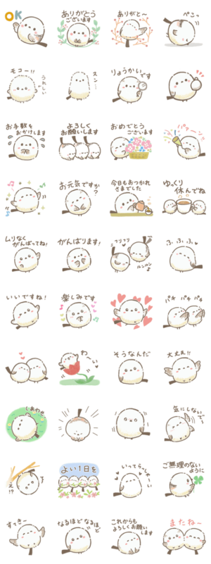 かわいい小鳥 野鳥のエナガさんとシマエナガさんの使いやすい日常会話スタンプです。/白いことり/便利/毎日使える/ほんわか/文字大きい/しまえなが