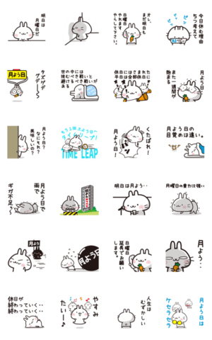 「休みたいウサギ」第4弾は、週に一度はもれなくみんなにやって来る月曜日専用スタンプです。
