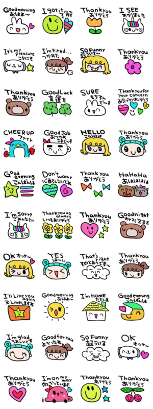 シンプルな日常会話スタンプです。日本語&英語スタンプ