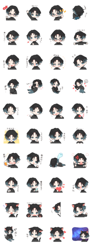 赤面や猫耳姿が可愛い♡照れ屋で強気なセンターパートの男の子のほのぼのスタンプです!女の子版とペアで使えます!リアクションや愛情表現多めで恋人や友達、大切な人へ♪