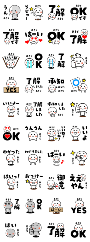 彰/明/聡/章/晃/瞳/昭/朗/晶/アキラなど【あきら】の名前入りスタンプMIKIKUN より発売