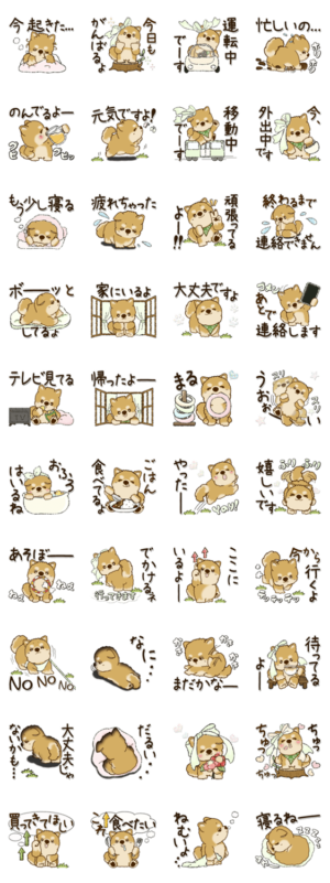 柴犬・茶色い犬のちゃちゃ丸の自分の様子を伝えるスタンプです。藤花 より発売