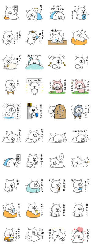 やる気が出ない時に使えるスタンプです。家族や友達、彼氏彼女、ママ友...日常のトークに添えてみてください。