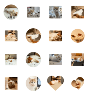 スコティッシュストレートです。2023年1月21日生まれの猫。2023年4月の様子をスタンプにしました。KiNu より発売