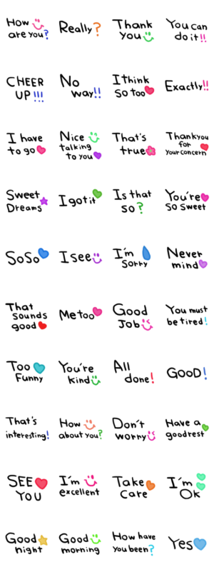 シンプルな日常会話スタンプです。英語スタンプnenerin より発売