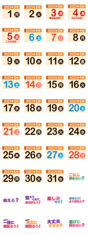 2023年5月日付カレンダーのダウンロードはこちら↓