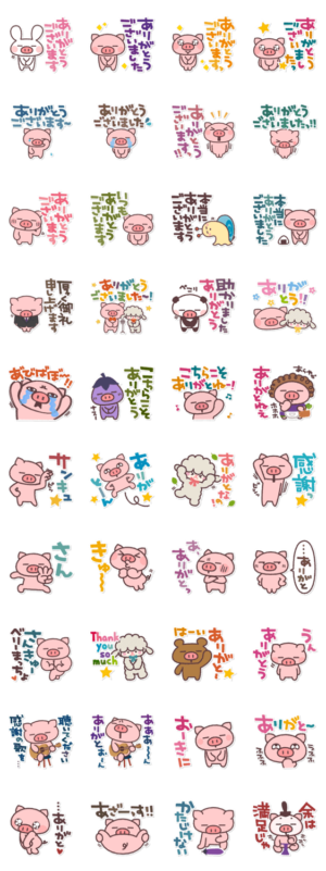 ぶたたがいろんなシチュエーションで「ありがとう」を伝えます。decosmith より発売