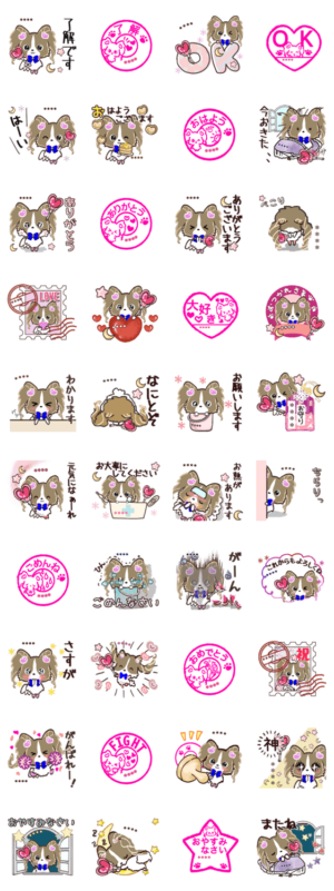 愛犬家のわんこ♡パピヨン♡ハンコ入り スタンプ画像一覧