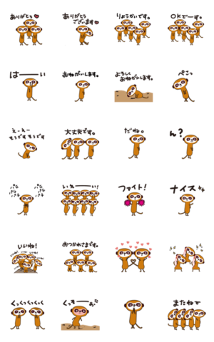 ミーアキャット部シリーズ。ミーアキャットのかわいい動きの毎日使える動くスタンプ。コイケイコ より発売