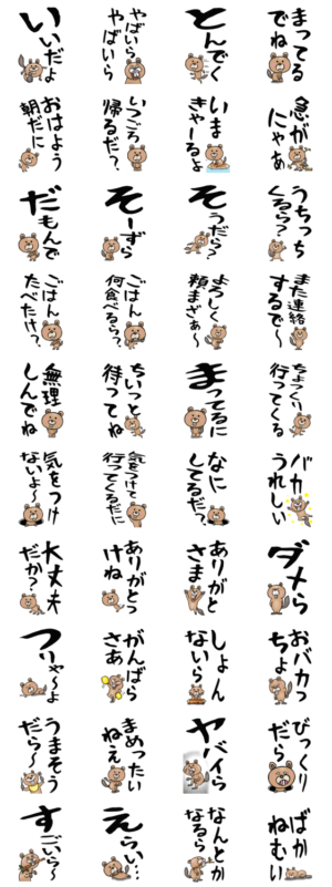 老眼や文字が小さくて読みづらい方々のための大きな文字の静岡弁ビーバーちゃんのスタンプです。おじいちゃん、おばあちゃん、シニア世代の方々、どうぞ。 ※このスタンプはトークルームで大きく表示されるBIGスタンプです。Brody Machine より発売