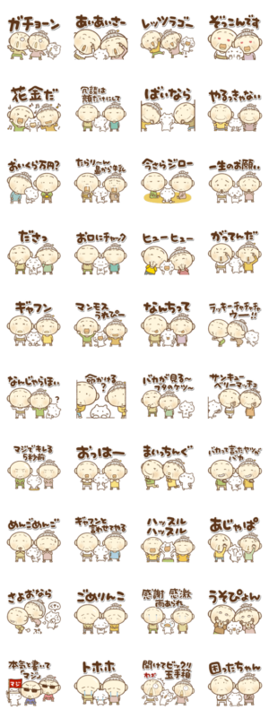 愉快なおじいちゃんとおばあちゃんとねこっちの楽しく使える死語スタンプです。takopon より発売