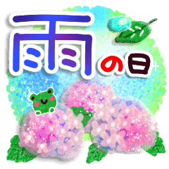 雨の日・梅雨・暑い日など、お天気にまつわる便利なスタンプセットです。(雨・梅雨・大雨・初夏・夏・カエル・アジサイ・傘)ようこ より発売