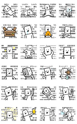 豆腐でニートだけどまだ腐っちゃいない“とうふニート” の背後で無数のメッセージが流れるユニークなエフェクトスタンプ。インパクト抜群で感情が伝わる!C10 より発売