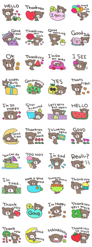 シンプルな日常会話スタンプです。英語スタンプnenerin より発売