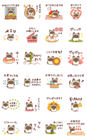 飛び出す!毎日使えるシャム猫スタンプ 2 スタンプ画像一覧