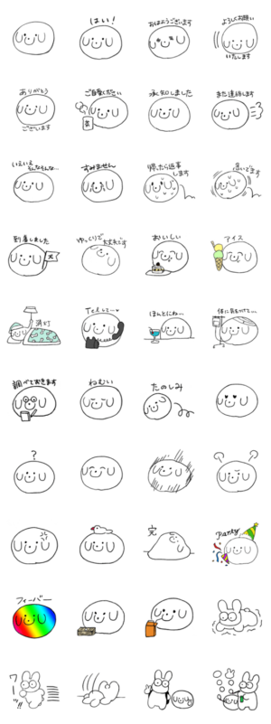 犬まんじゅうとトリとうさぎの使えるスタンプですいぬとり より発売