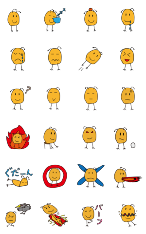 凡人ブランドのミスターたまごのスタンプです。 可愛くてユニークなミスターたまご、彼の成長性にはとても期待できます。bonjin より発売